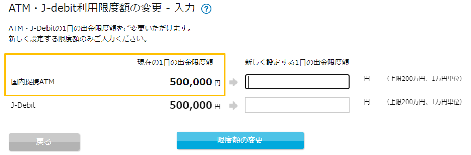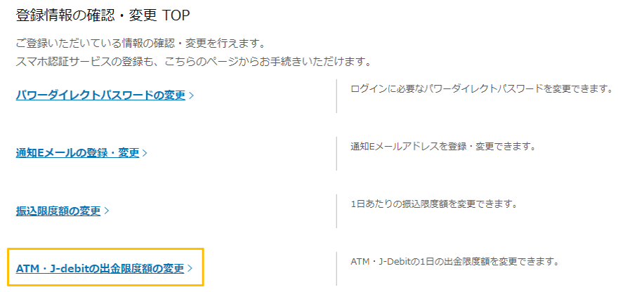パワーダイレクト:ATM・J-debit出金限度額変更